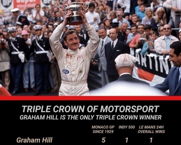 Only two figures were staying still; they were nearby and just talking – lo and behold one of them was none other than my hero, reigning Formula 1 World Driving Champion Graham Hill. He’d won auto racing’s Triple crown: the Indy 500, the 24 Hours of Le Mans – and the Monaco Grand Prix… five times! He even had an OBE after his name, which isn’t quite a knighthood, but close.